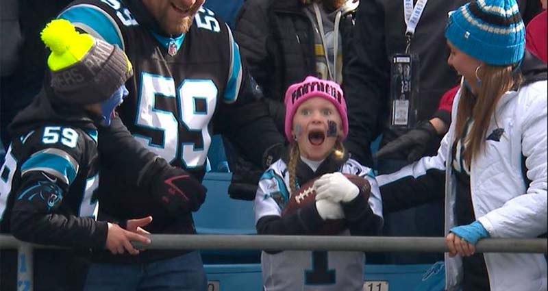 La mayoría de ustedes conoce el fenómeno que está ocurriendo en el Bank of America Stadium (casa de los Carolina Panthers). Es casi un hecho que cuando los Panthers anotan un TD en casa alguno de los niños que está viendo el partido desde el endzone del estadio recibe un balón.